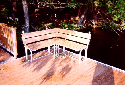 Residential US Plastic Cedar docks with corner bench and handrails. 2: